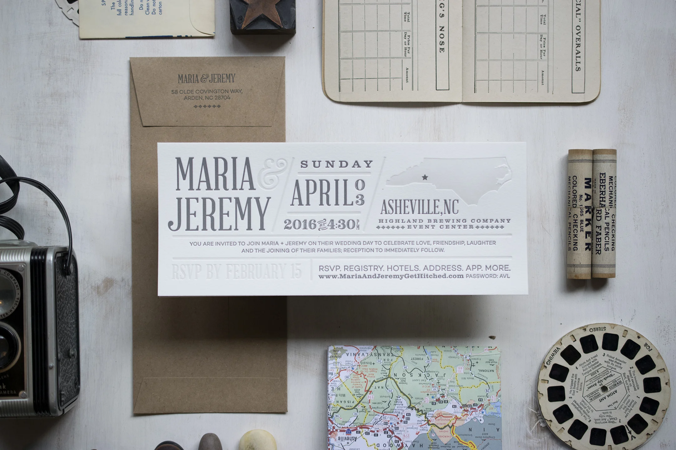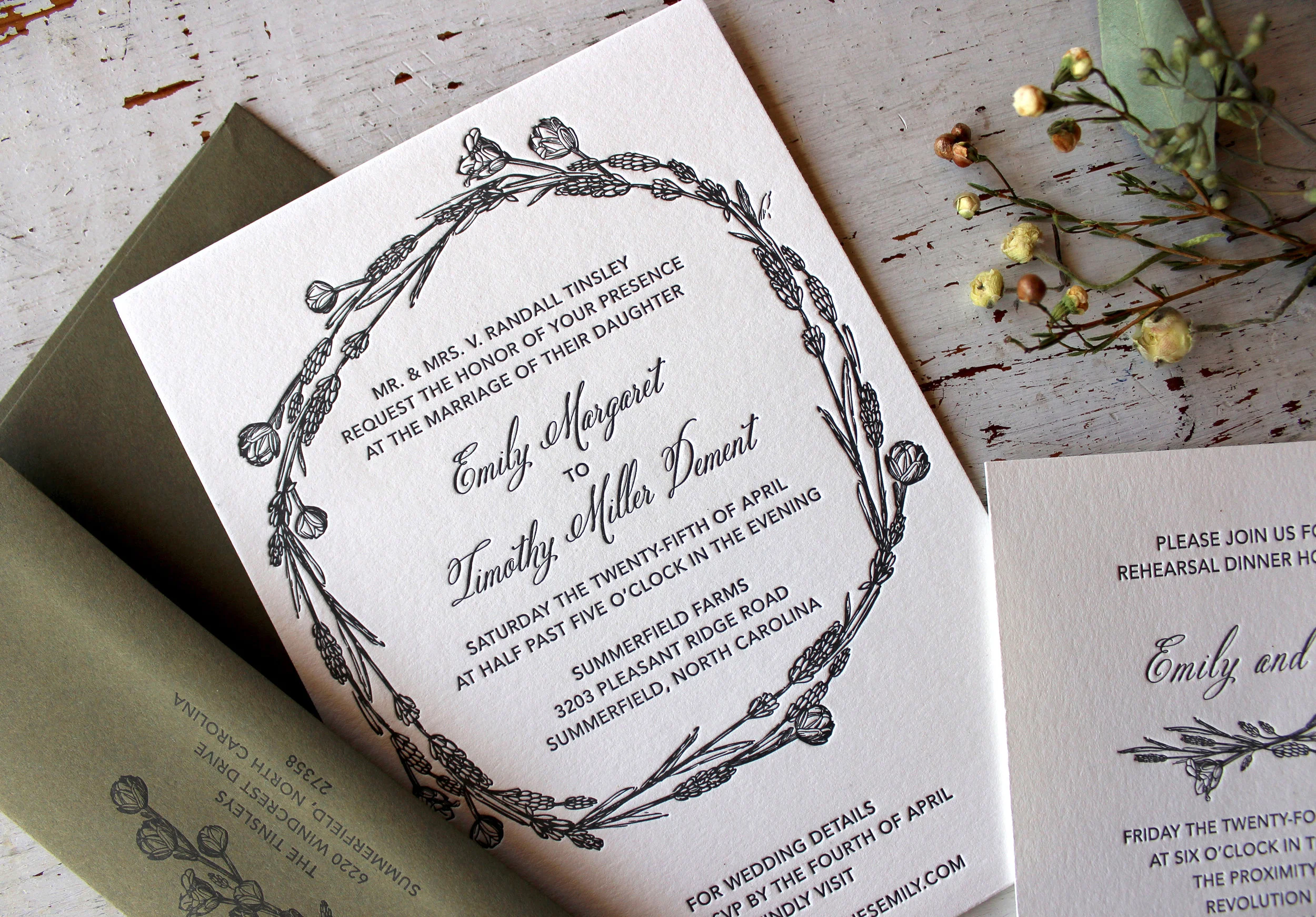 Tim & Emily: Letterpress printed wedding invitation suite