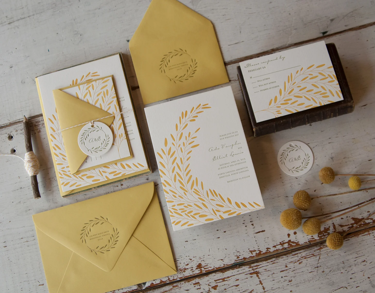 Camille & David: Letterpress printed wedding invitation suite.