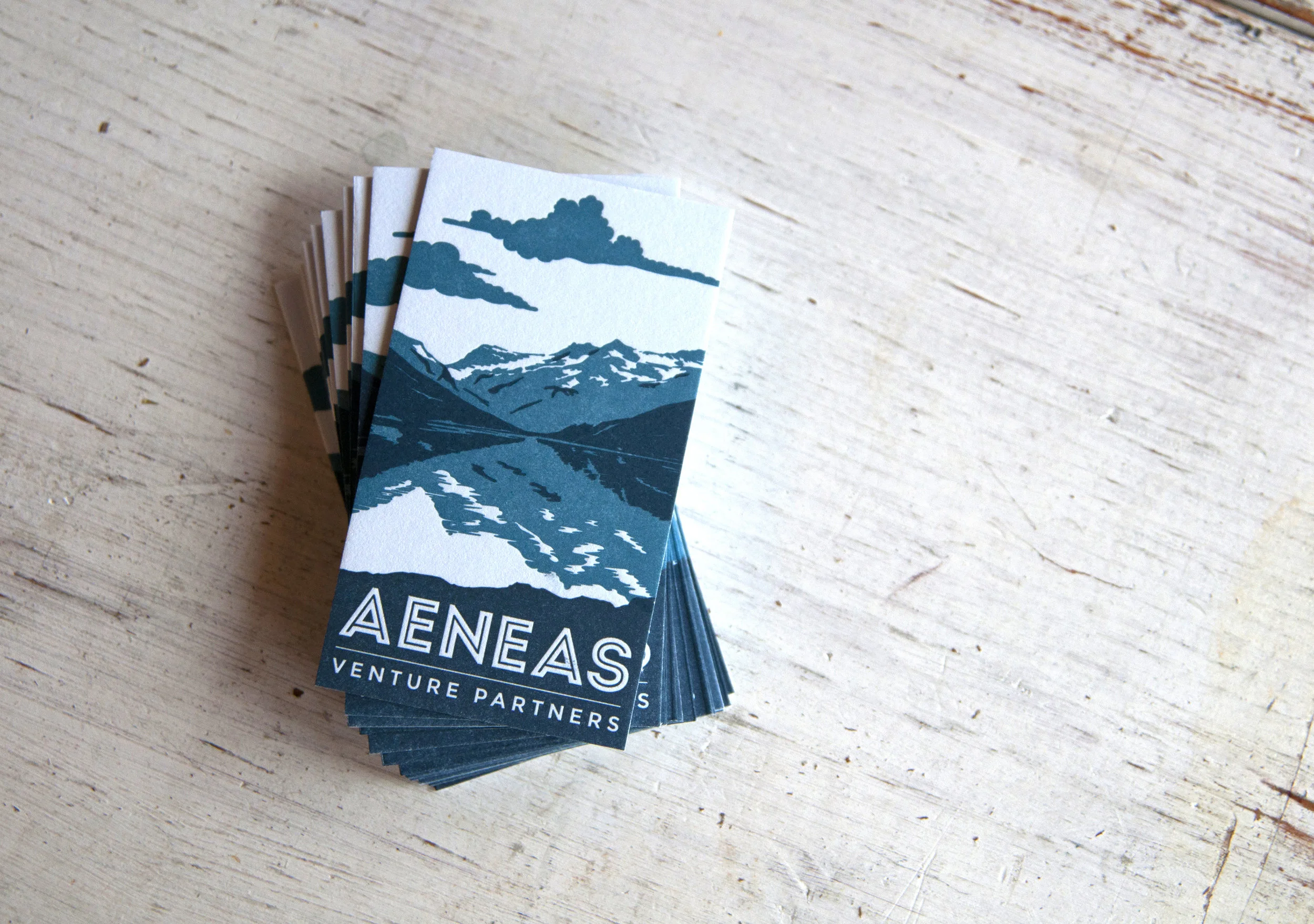 Aeneas Business Cards : Design by ODDS : Letterpress Printed in two colors on two sides.