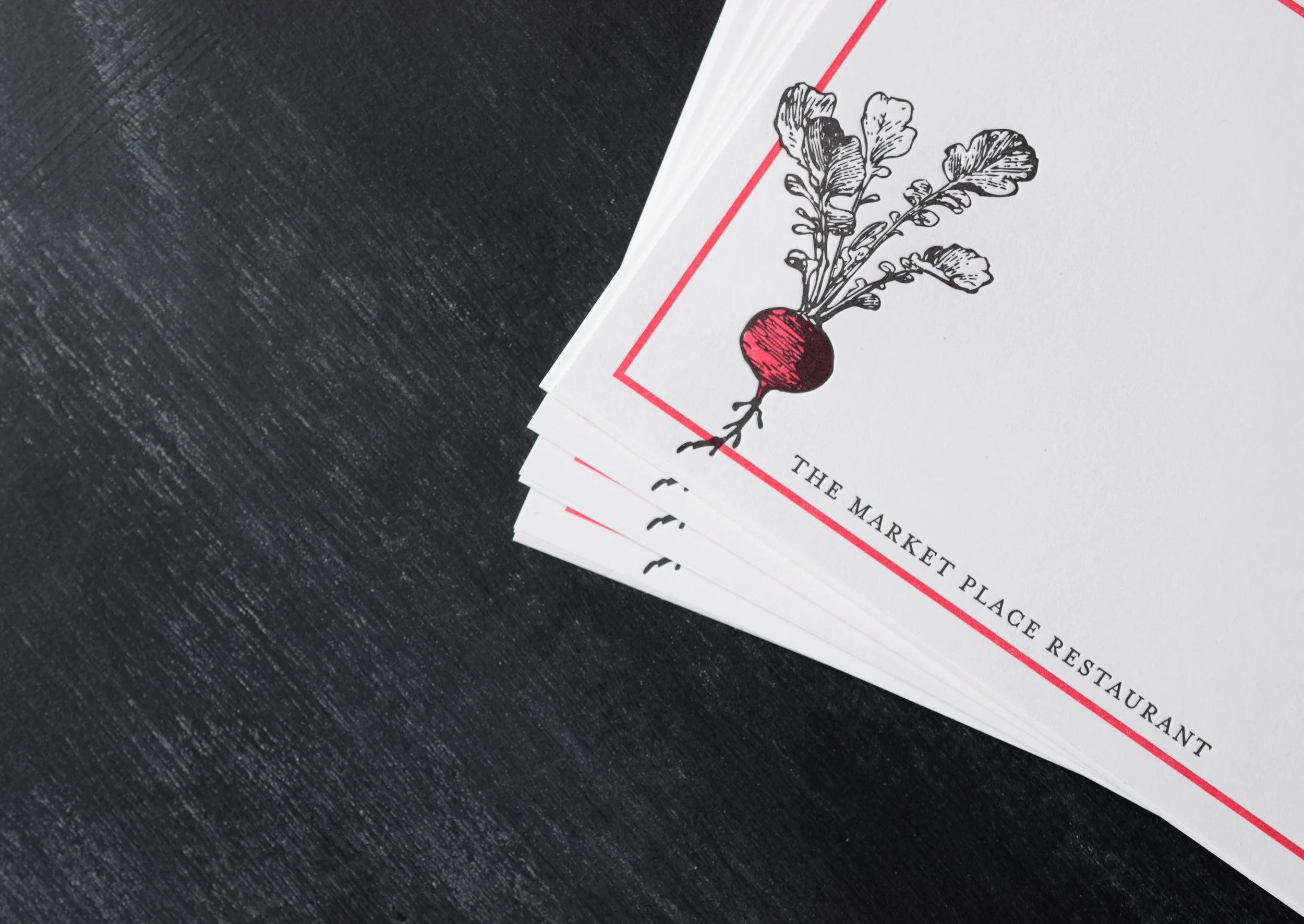The Market Place Restaurant : Letterpress Printed Stationery : Two color with corresponding envelopes.