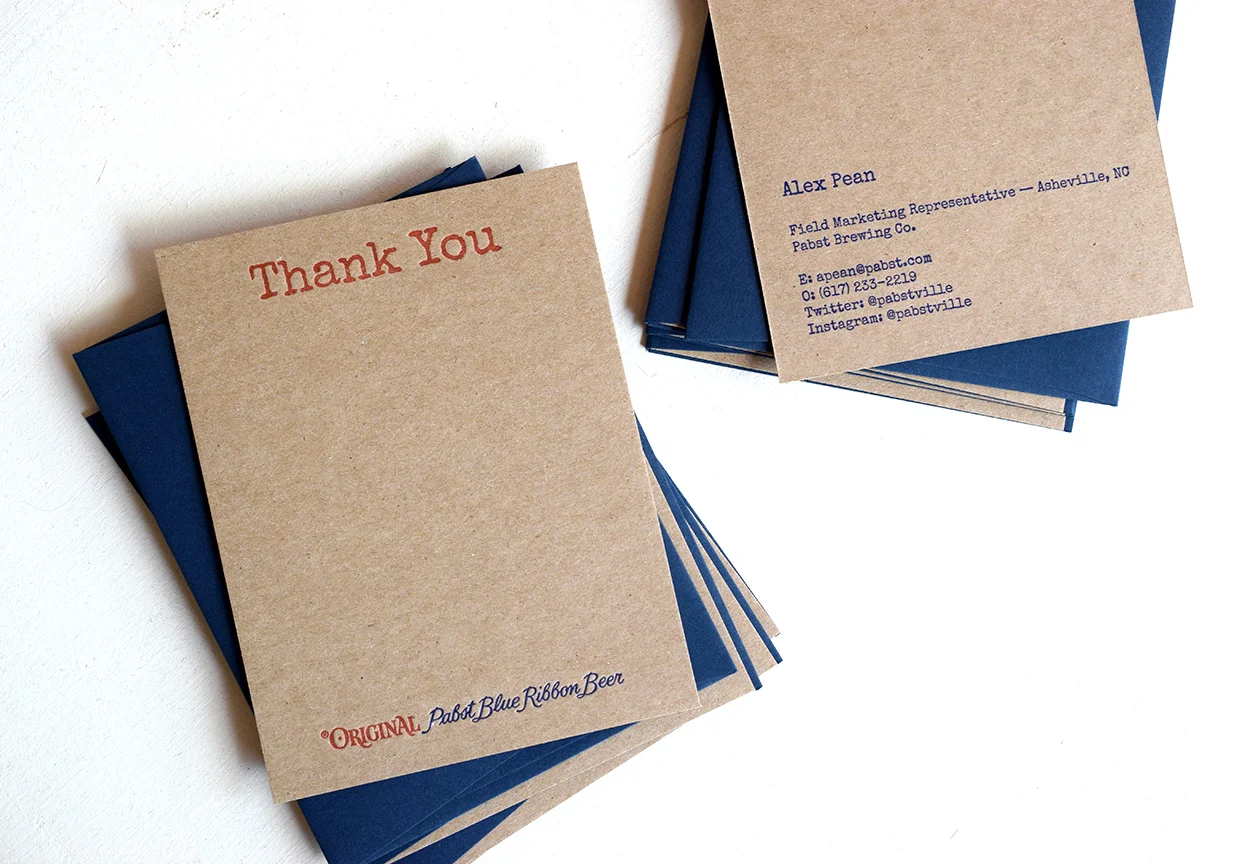 Pabst Blue Ribbon Stationery : Letterpress printed on two sides with corresponding envelopes.