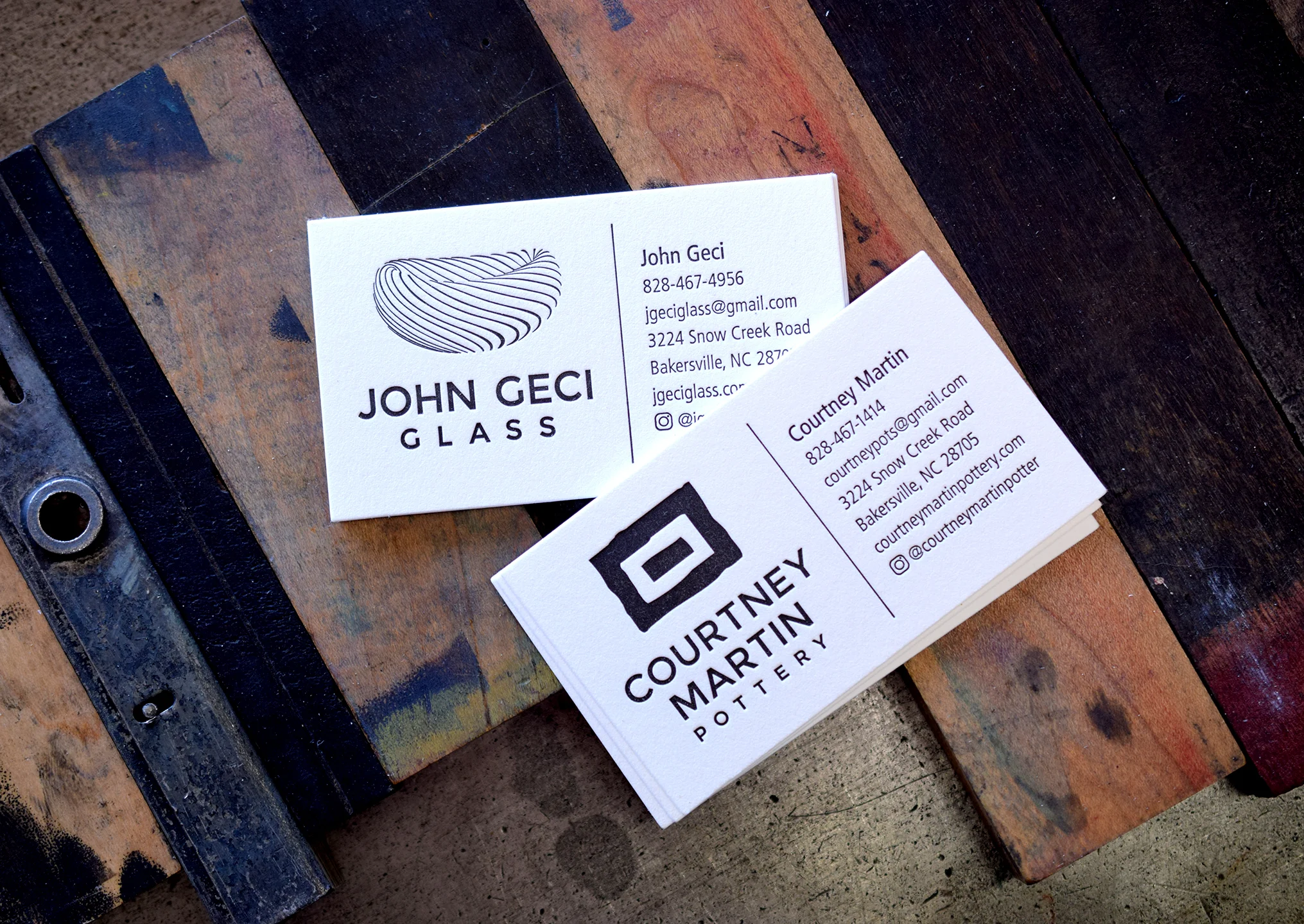 Courtney Martin Pottery & John Geci Glass Business Cards : Letterpress Printed : Design by ODDS and 7 Ton Co.