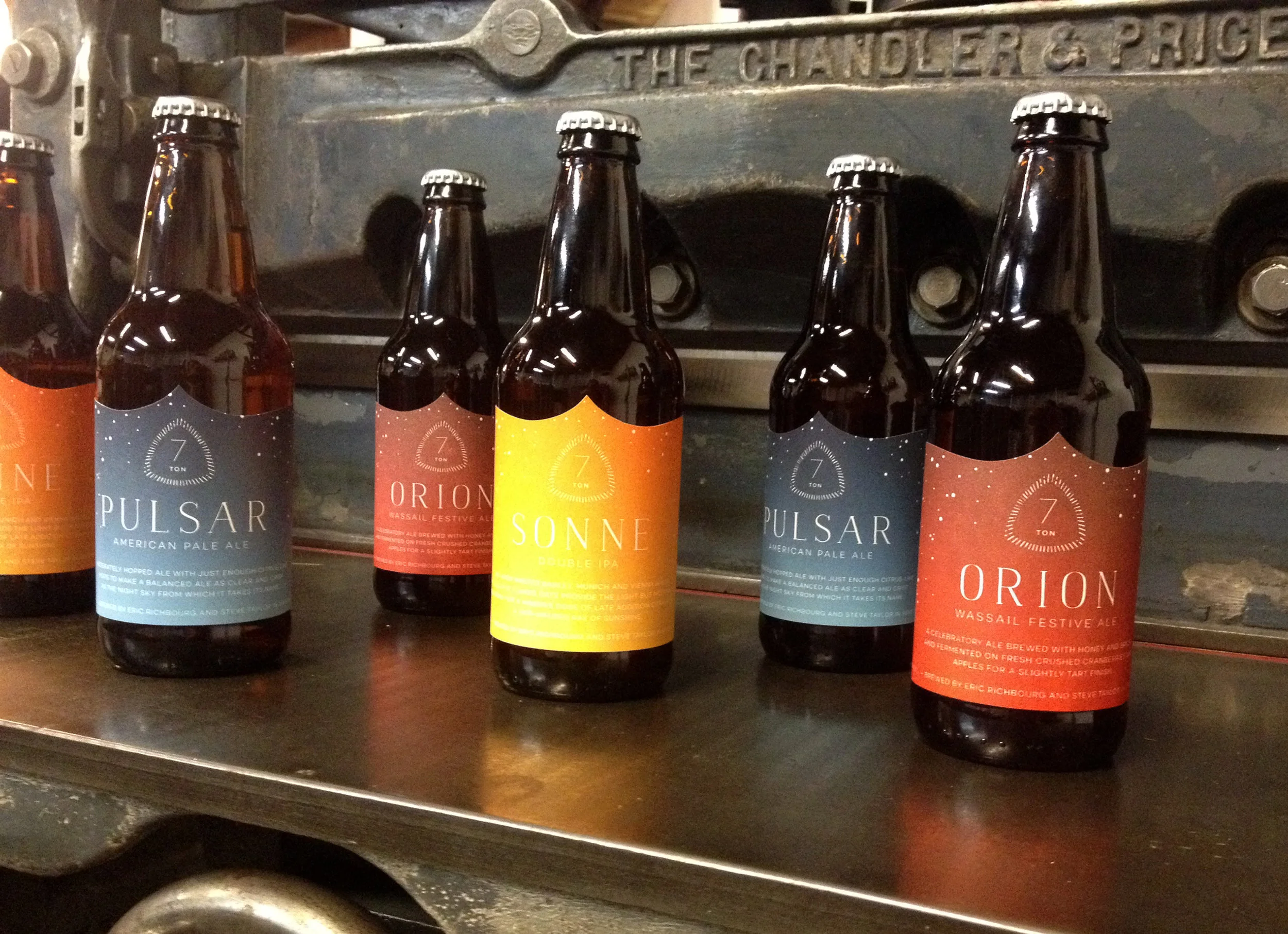 7 Ton Co. Beer Labels : Letterpress Printed and diecut beer labels.