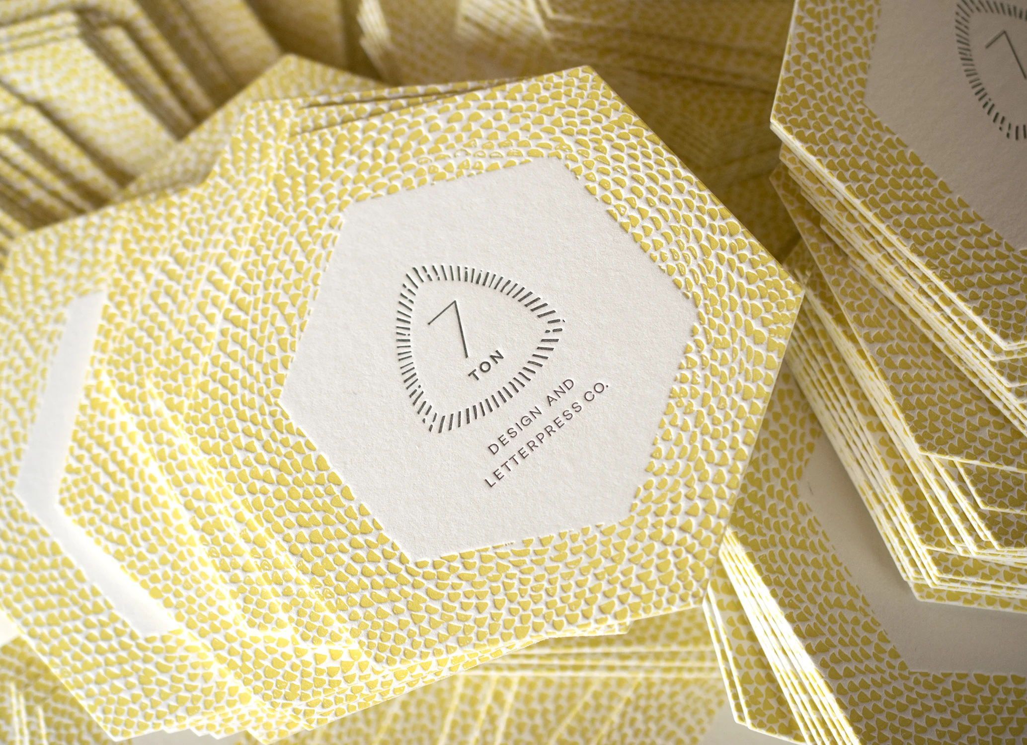 7 Ton Co. Business Cards : Letterpress printed in two colors on two sides and diecut.