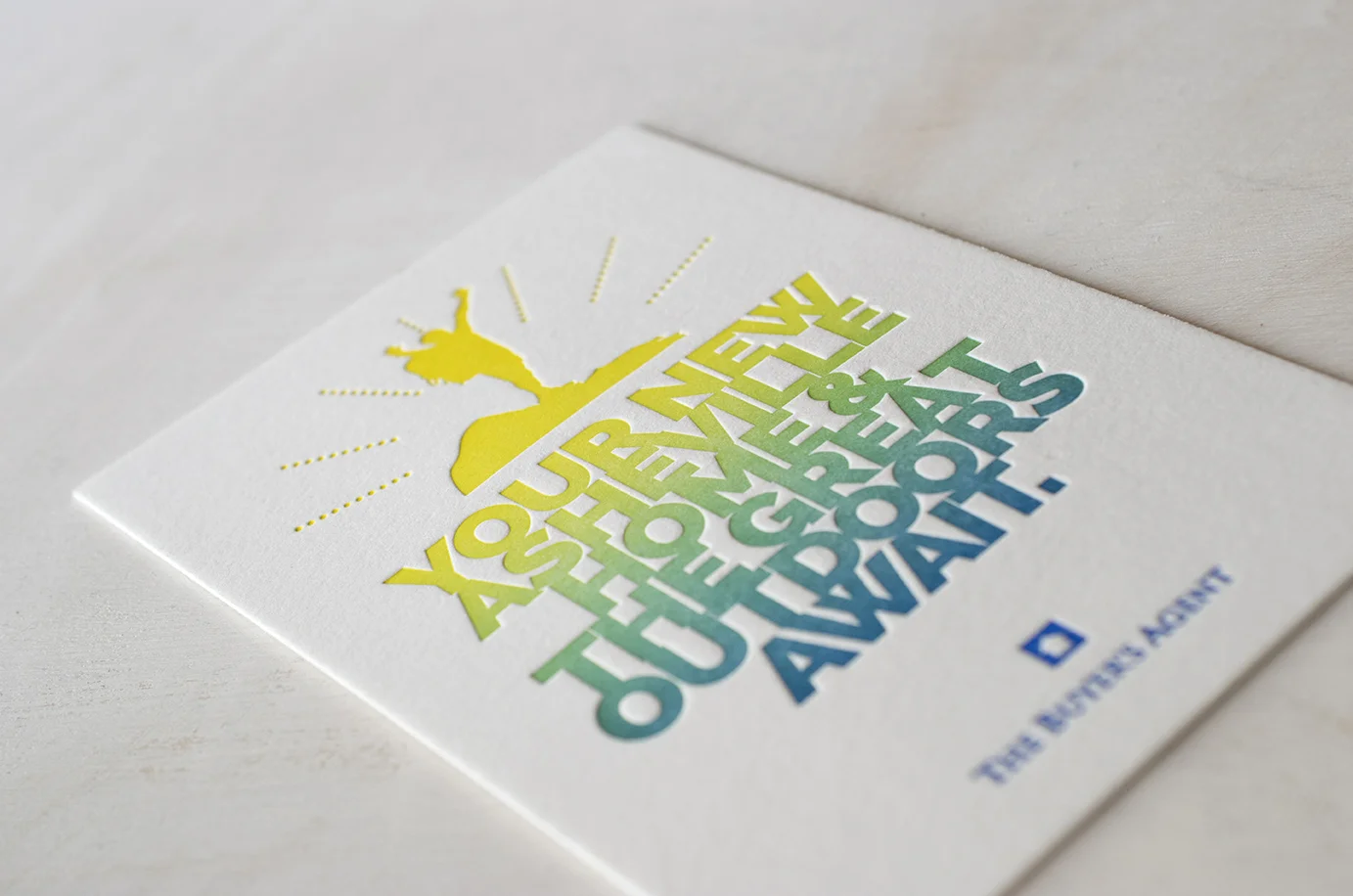 The Buyers Agent Postcards : Design by 828 Design : Letterpress printed with a split fountain.