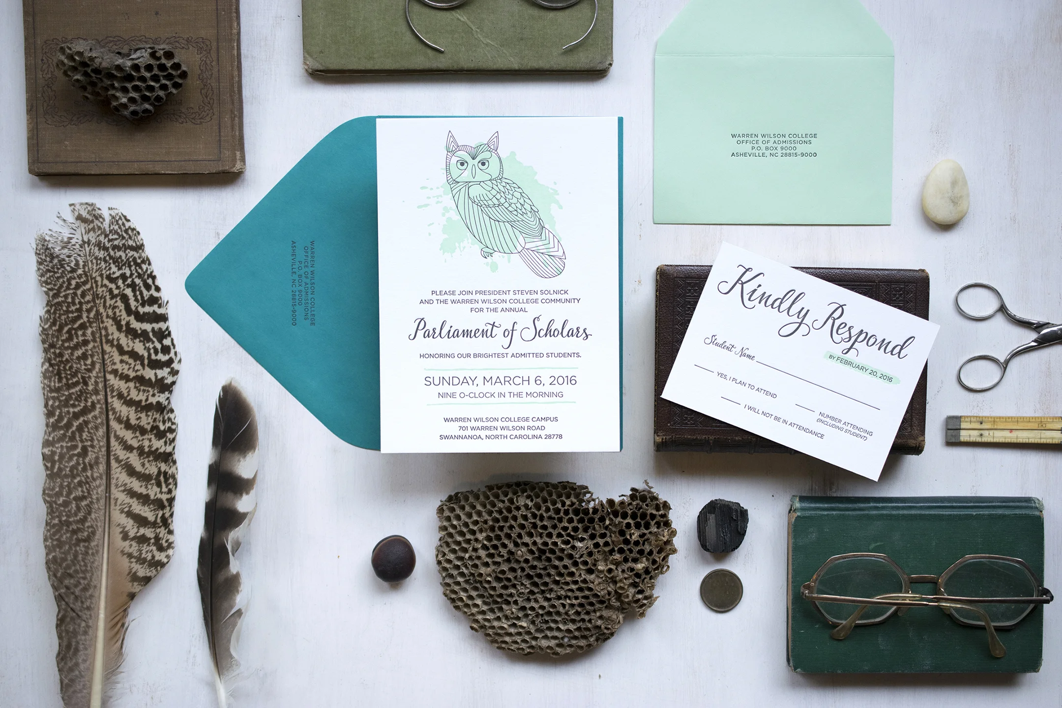 Warren Wilson College Admissions Invitations : Design by Warren Wilson College : Letterpress Printed in two colors with corresponding envelopes.