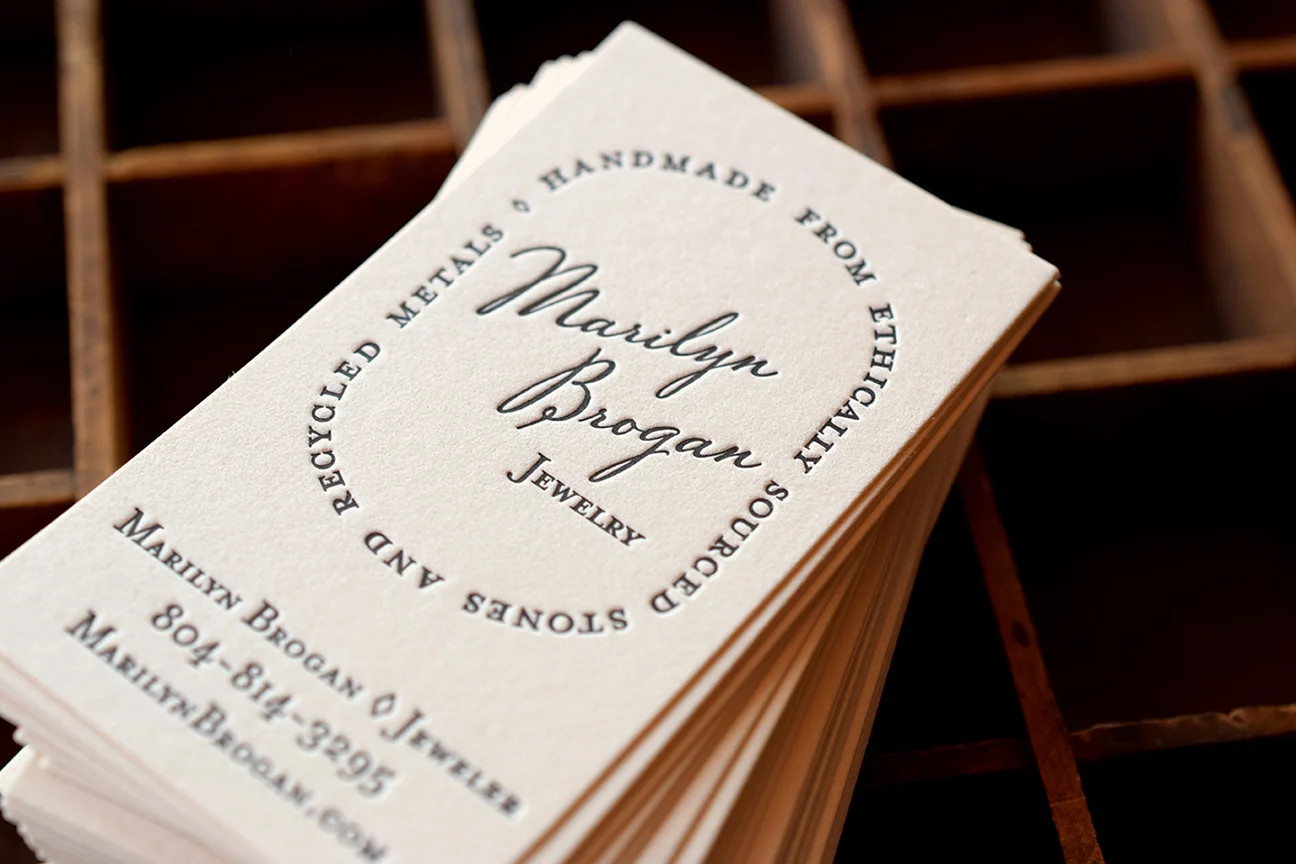 Marilyn Brogan Jewelry Business Cards : Design by 7 Ton Co. : Letterpress Printed.