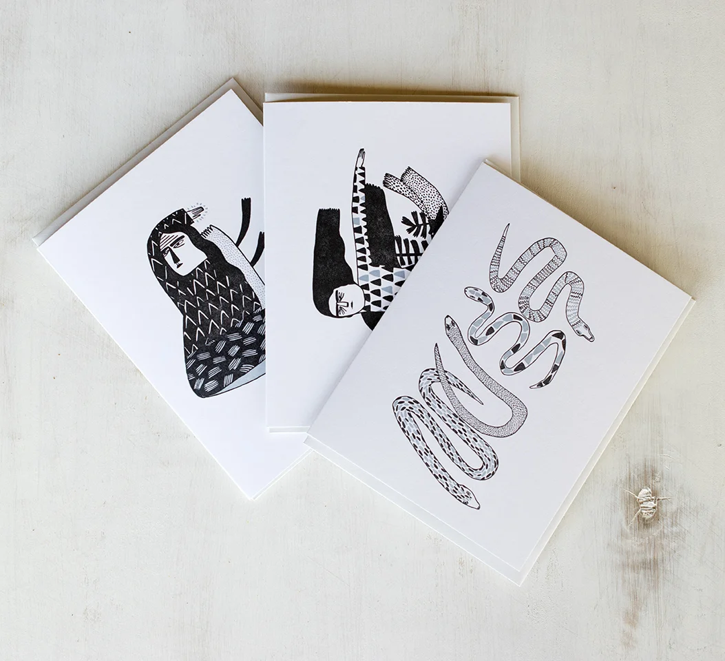 Kreh Mellick Stationery : Illustrations by Kreh Mellick : Letterpress Printed in two colors.